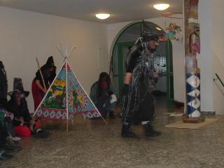 Inzwischen wurden die Lehrer als Cowboys und Indianer verkleidet.