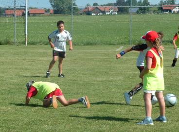 | Schulmeisterschaft Fußball Bei der Fußball-Schulmeisterschaft am 02.07.08 repräsentierten die dritten und vierten Klassen Ländermannschaften, die bei der EM 2008 teilgenommen hatten. In den farblich passenden Trikots eiferten die Kinder ihren großen Vorbildern nach. Damit alle Schüler auch mitspielen können, wurde zusätzlich zum A-Turnier für die „Profis“ auch ein B-Turnier für die anderen fußballbegeisterten Kinder organisiert. Dieses Turnier wurde von der vierten Klasse beherrscht und verdient gewonnen. Beim A-Turnier traten die Teams in der Vorrunde zunächst im Modus „jeder gegen jeden“ an. Die beiden bestplatzierten Mannschaften bestritten das Finale. Die vierte Klasse errang durch ein Tor in letzter Minute den 2:1-Sieg gegen die 3a und damit die Schulmeisterschaft. Herzlichen Glückwunsch! Die