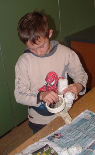 | Nanas nach Niki de Saint Phalle Im Rahmen der AG "Bildnerisches Gestalten" schufen die Kinder von September bis Weihnachten Nana-Skulpturen nach den Vorbildern der Künstlerin Niki de Saint Phalle. Zunächst lernten sie die Künstlerin und deren Figuren kennen. Dann wurden die Grundkörper aus Zeitung geformt und anschließend mit Pappmachée umkleistert. Den Abschluss bildete eine Schicht aus weißem Papier, so dass die Figuren gut bemalt werden konnten. Die Kinder waren mit Feuereifer und viel Durchhaltevermögen dabei - und die Ergebnisse können sich wirklich sehen lassen ! |