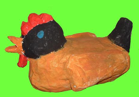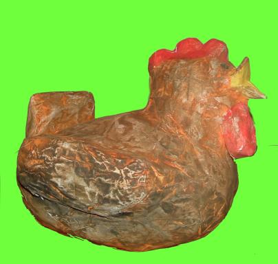 | Hühnervolk Rechtzeitig zu Ostern wurden unsere Pappmachée-Hennen der Nachmittagsgruppe Bildnerisches Gestalten fertig. Die ein oder andere sieht auch so aus, als würde sie noch schnell dem Osterhasen bei den Ostereiern helfen .... |